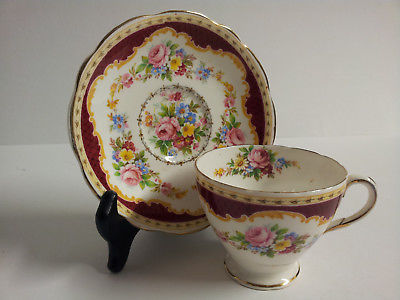 Windsor Foley Bone China England Burgundy Floral Tea Cup and Saucer