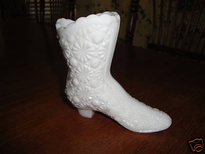 FENTON Milk Glass Boot 1940's MINT W/Tag