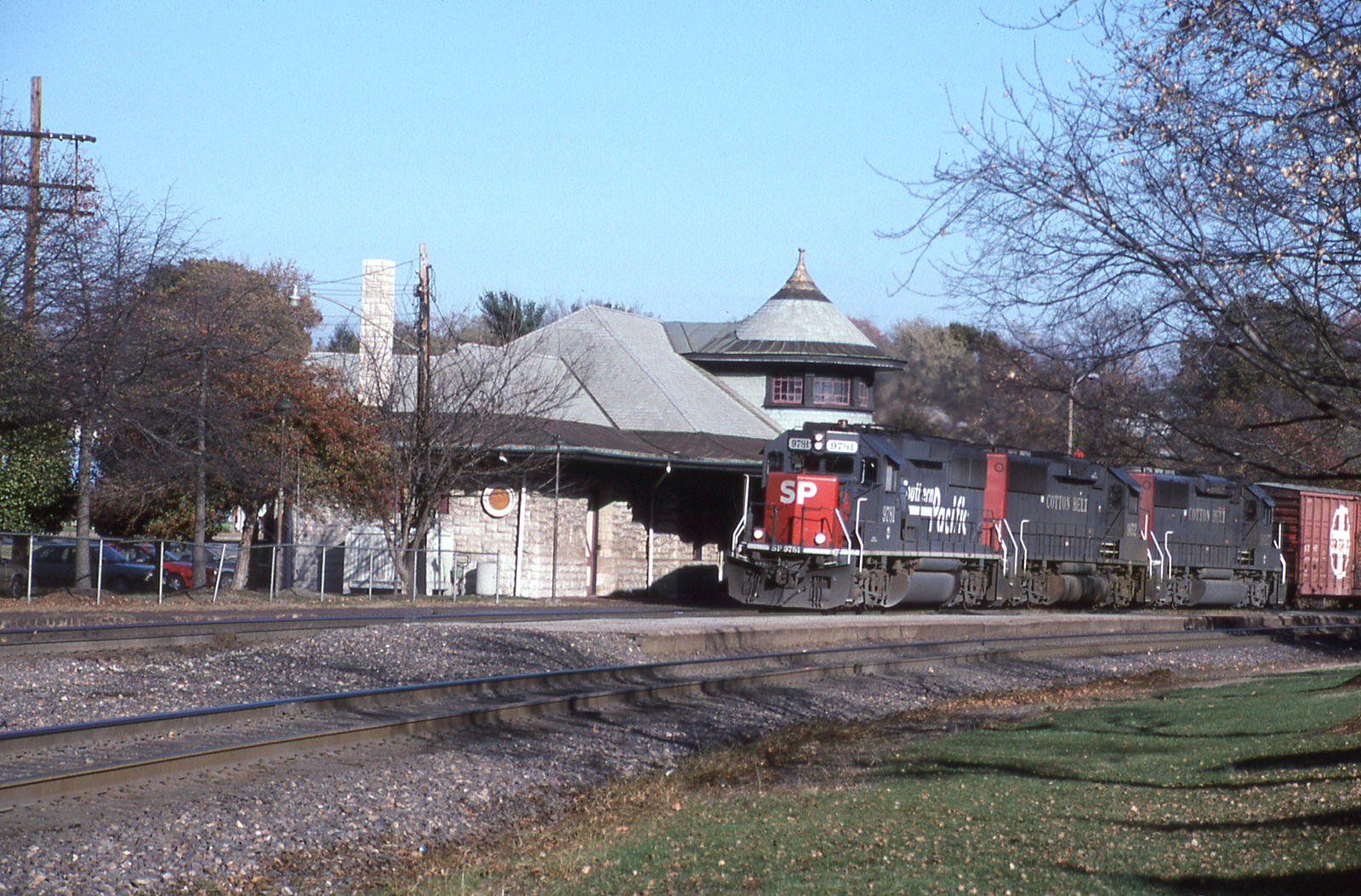 Southern Pacific GP60 # 9781 action @ Kirkwood, MO 11/05/1995