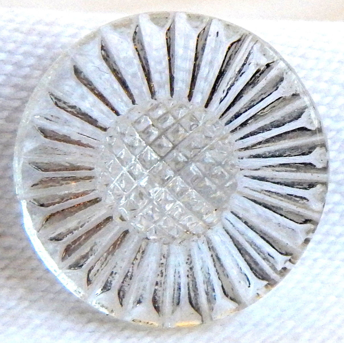 Title (ebay affiliate link): WONDERFUL 1930''S CRYSTAL CLEAR DEPRESSION GLASS "DAISY" BUTTON ~ 1"
