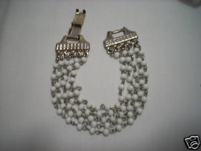 WHITE MILK GLASS BEADED 5 STRAND BRACELET