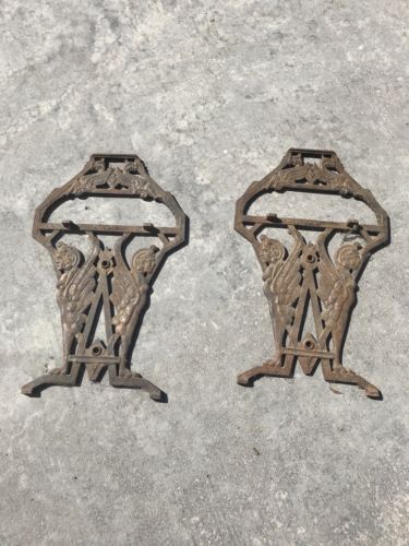 Antique Art Deco Cast Iron Bench Ends With Gargoyle and Seraphim decoration