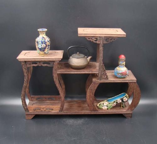 Title (ebay affiliate link): Rare solid hardwood curio shelves Stand Shelf Handmade Carving Deco Art