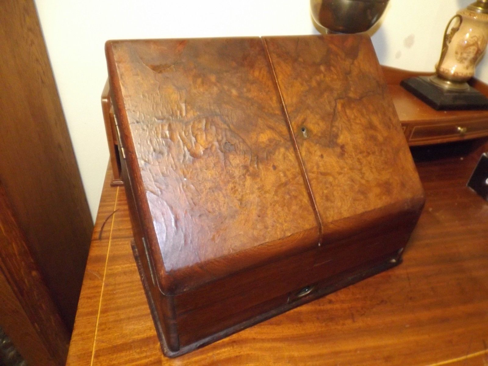 Title (ebay affiliate link): Antique 1800s Burl Walnut & Mahogany Pen & Ink Writing Desk Set Secretary BEAUTY