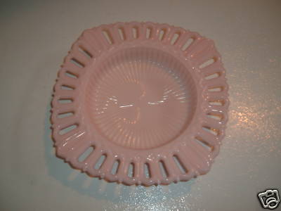 VINTAGE PINK MILK GLASS ORNATE DISH / ASHTRAY VERY NICE