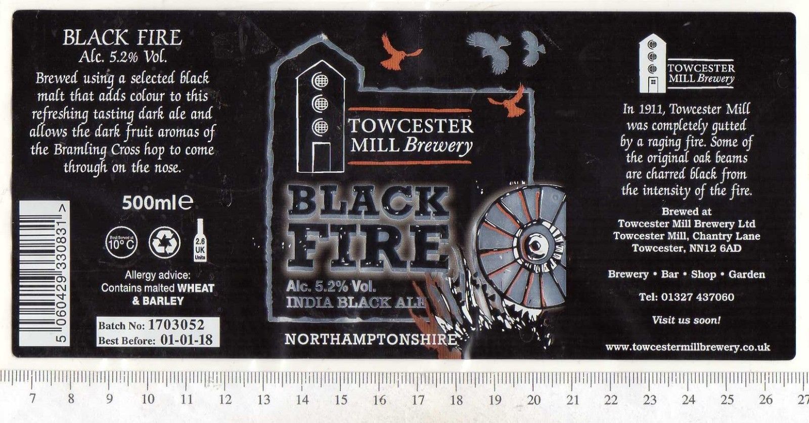 UK Beer Label - Towcester Mill Brewery - Northamptonshire - Black Fire