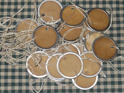 50 SMALL ROUND Metal Rim PRICE GIFT pRiMiTiVe Hang Tags vintage look LOT A14