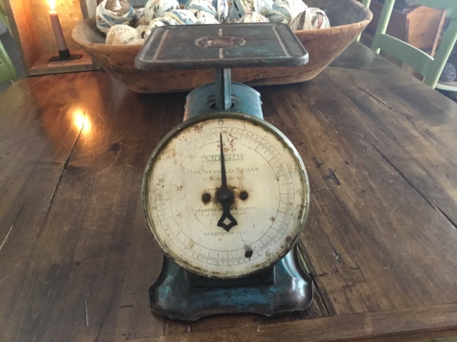 Title (ebay affiliate link): EARLY ANTIQUE PRIMITIVE BLUE FAMILY KITCHEN SCALES UNIVERSAL RUSTY FARM