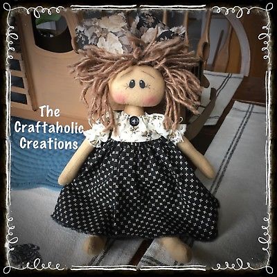 Title (ebay affiliate link): Primitive RAGGEDY ANN country doll floral shabby ROSE chic black tan BROWN HAIR