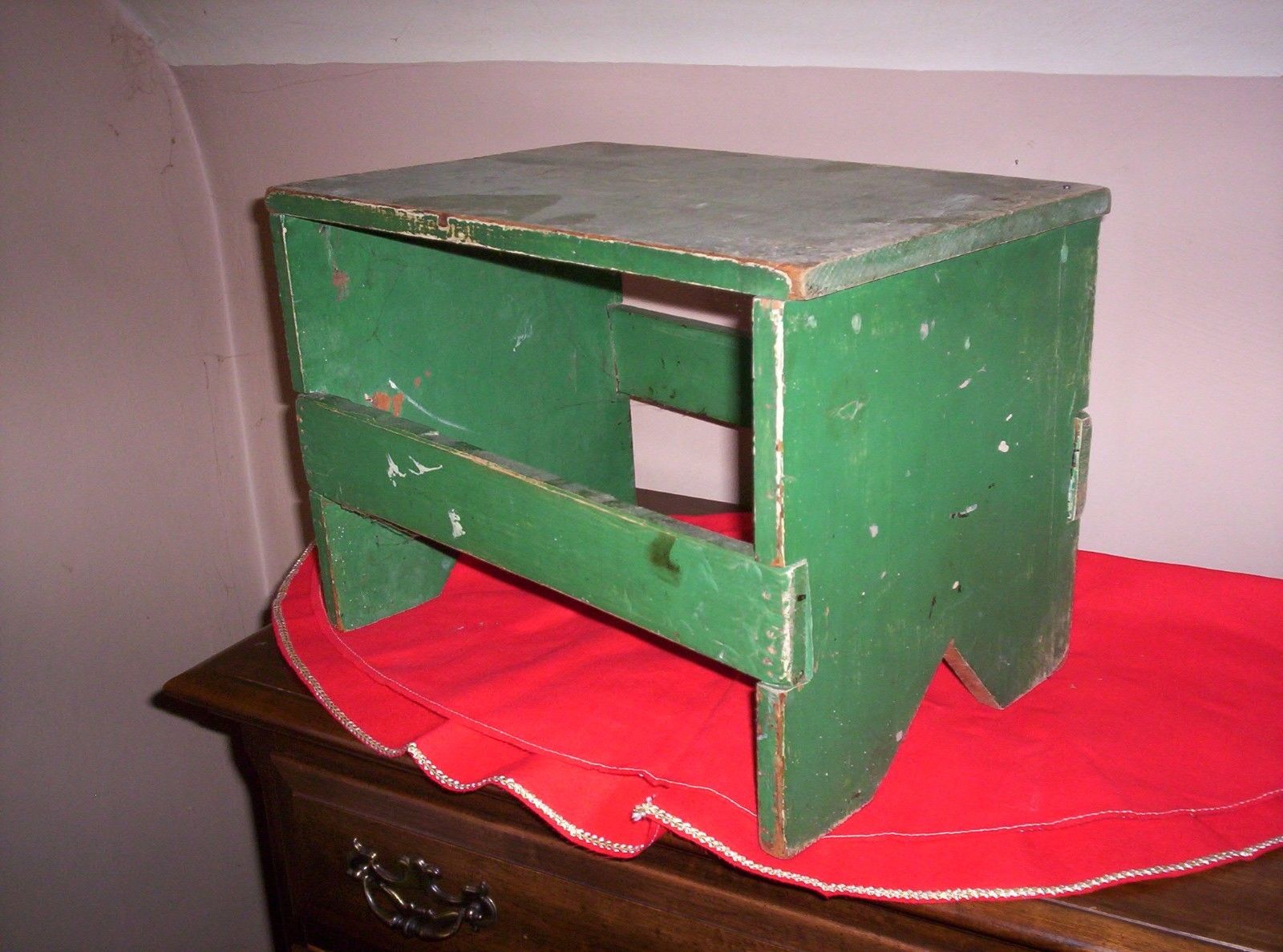 Title (ebay affiliate link): Nicely Aged Vintage Old Green Wooden Bench/Stool