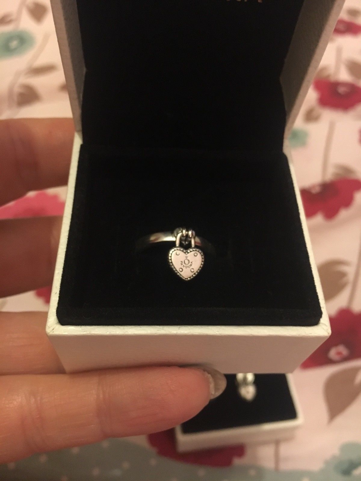 Title (ebay affiliate link): PANDORA Sterling Silver Love Lock Padlock Ring size 52