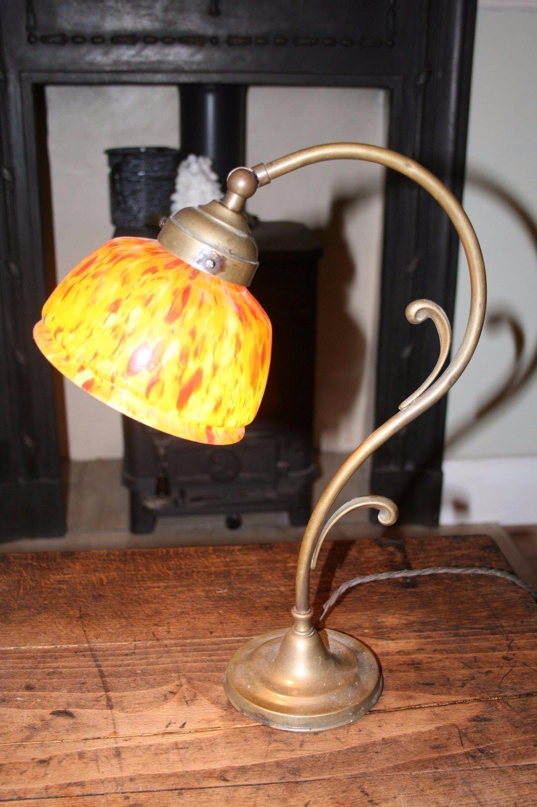 Title (ebay affiliate link): Lovely French Art Deco Nouveau Brass Adjustable desk lamp Czech glass shade