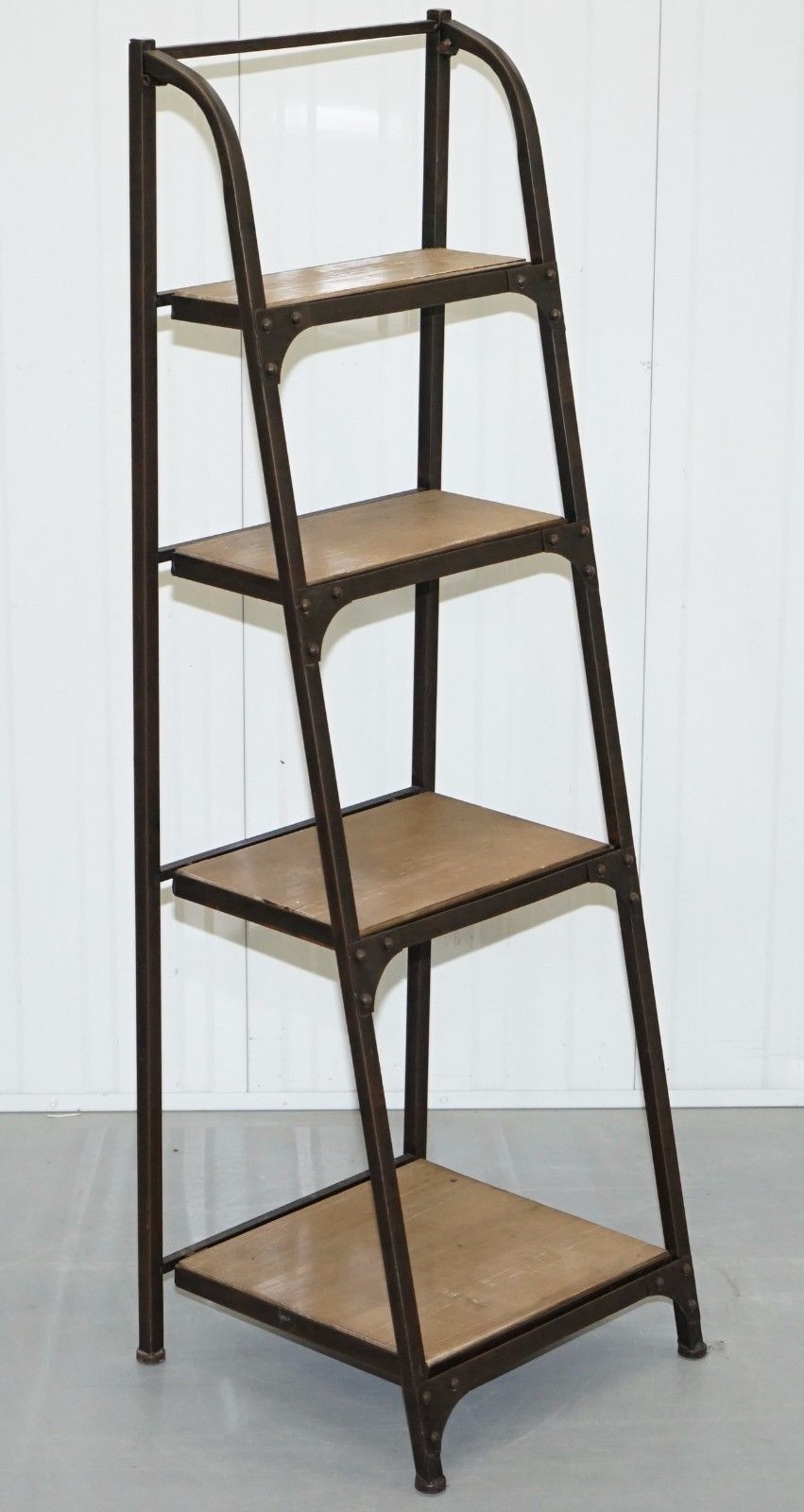 VINTAGE INDUSTRIAL STEEL BAKERS SHELVES LADDER BOOKCASE SOLID STEEL FASHIONABLE