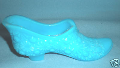 Blue Milk Glass Fenton Daisy Button Ladies Shoe
