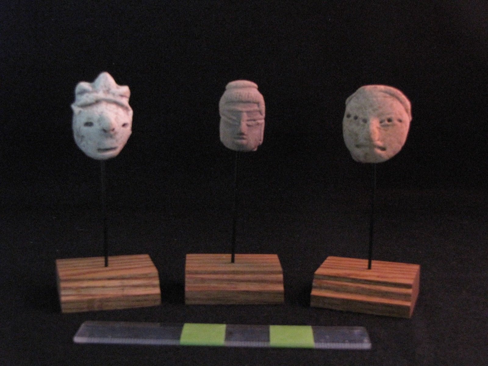 Title (ebay affiliate link): Pre Columbian, Pottery, Three Mounted Head/Facial Shards, E/L Po.Cl. 300 1500 AD