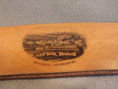 SCARCE ANTIQUE MAUCHLINE WARE WOOD EYEGLASS CASE - BAKEWELL SCOTLAND