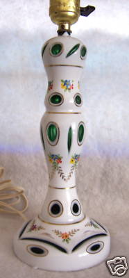 Bohemian milk glass overlay cut-to-green table lamp