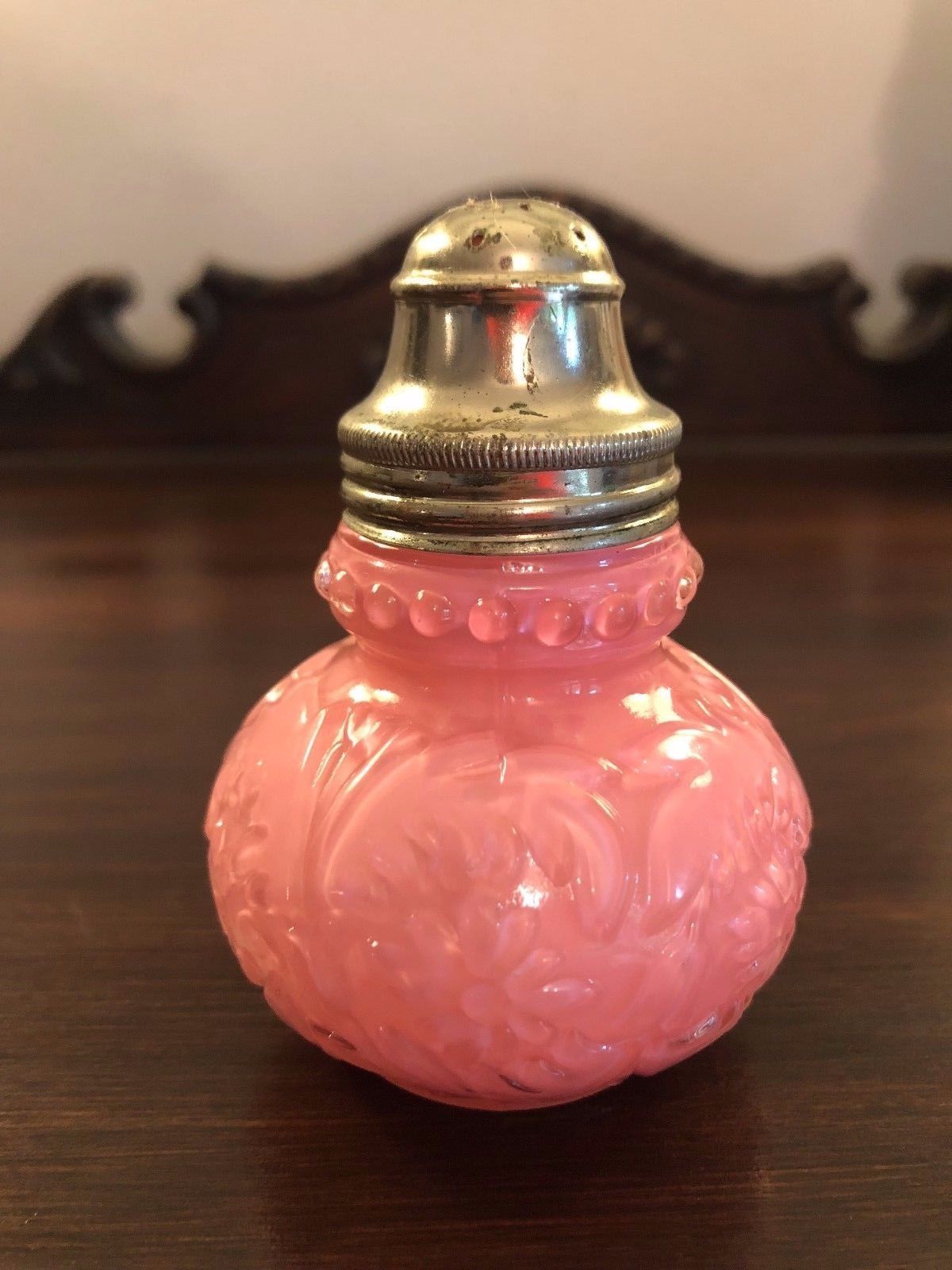 Antique EAPG Consolidated Glass Beaded Dahlia Pink Cased Shaker