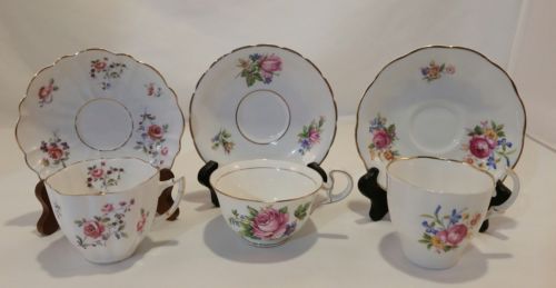 3 BONE CHINA TEA CUP AND SAUCER SETS