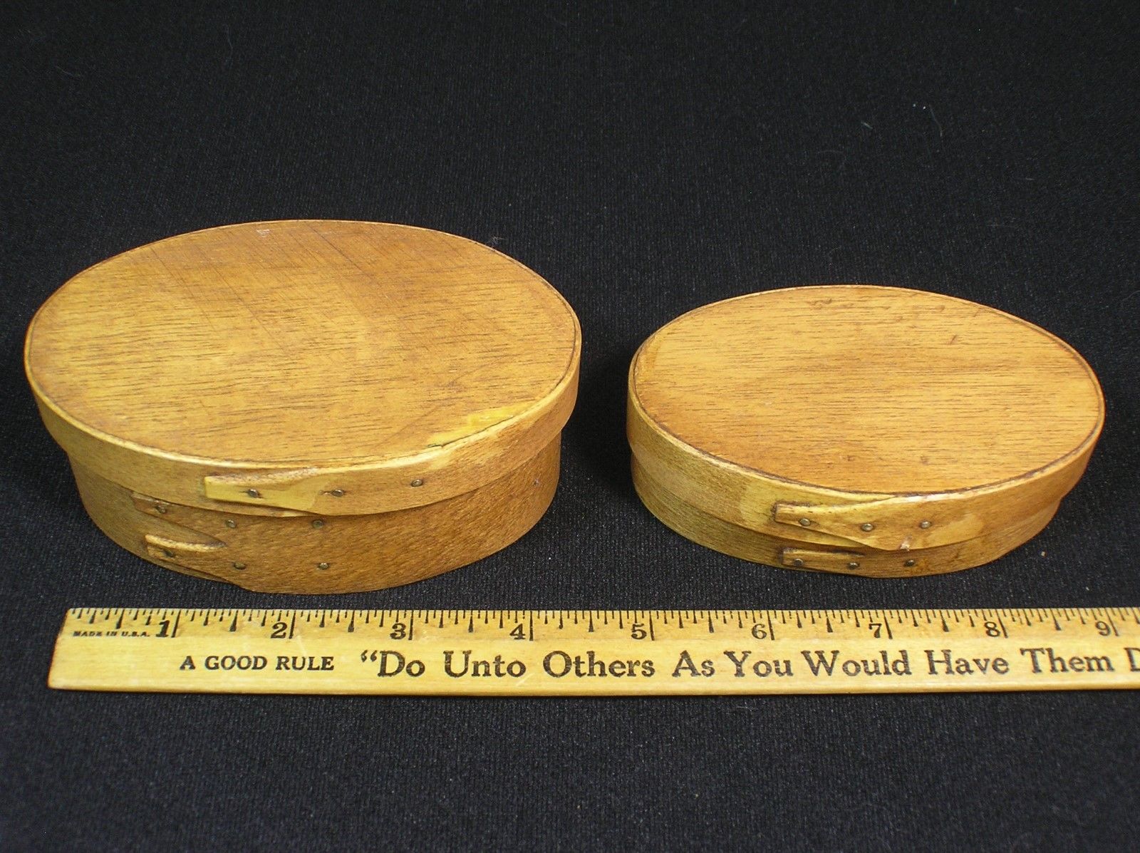2 Small Nesting Shaker Style Fingered Oblong Wood Boxes with Logo