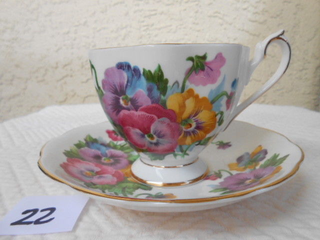 Title (ebay affiliate link): Queen Anne Bone China England TEA CUP and SAUCER Spring Melody Purple PANSIES