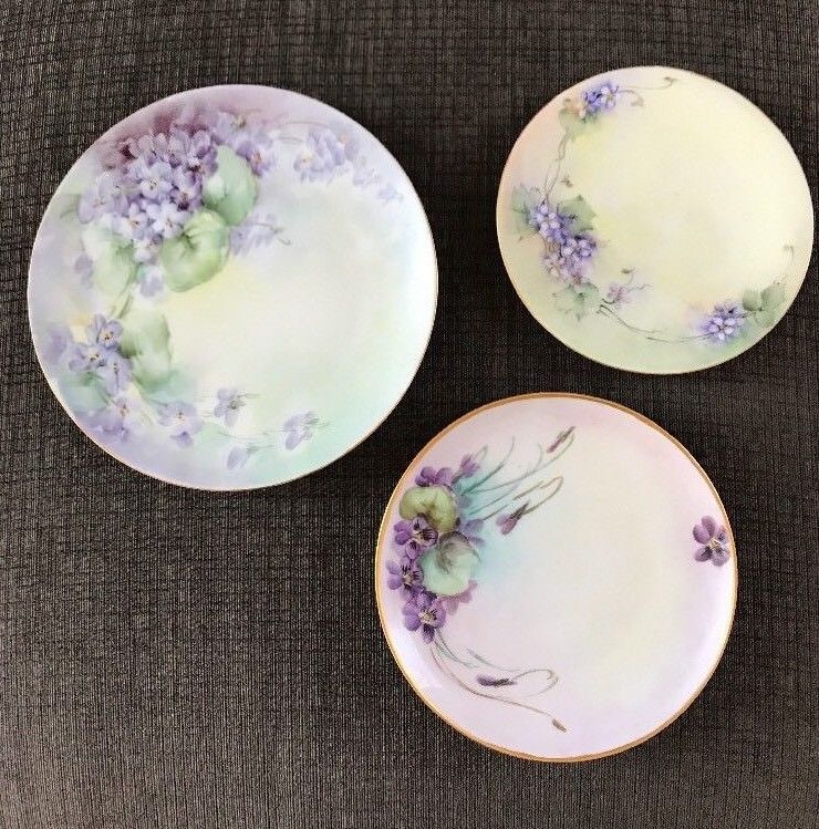 Title (ebay affiliate link): 3) Antique *Thomas Sevres Bavaria* Purple Violets DESSERT PLATES Hand-painted!