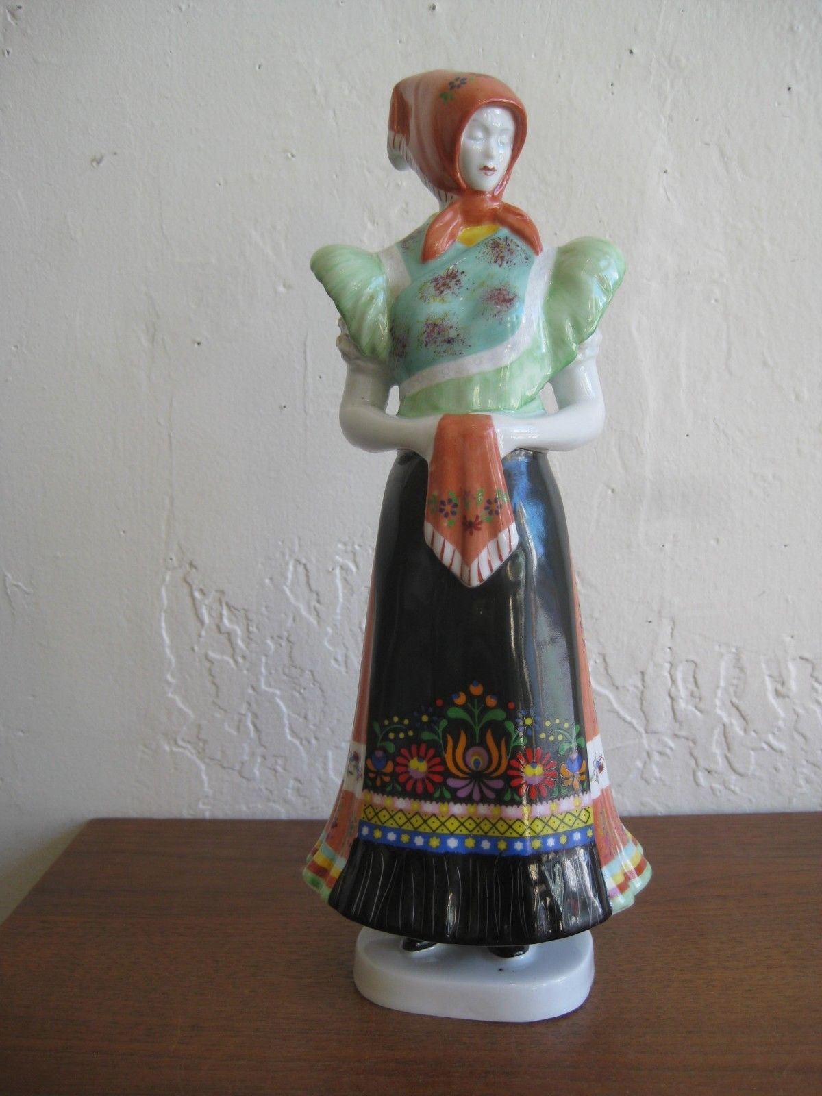 Title (ebay affiliate link): Vtg HOLLOHAZA GIRL LADY IN MATYO PORCELAIN FIGURINE HUNGARY MINT! 11 3/4" BIG!