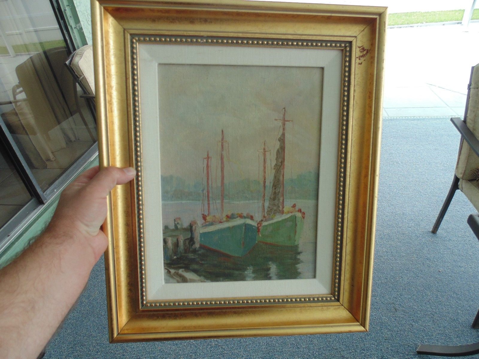 Title (ebay affiliate link): Nice Old Decorative Vintage Nautical Ship Harbor Scene Landscape Oil Painting