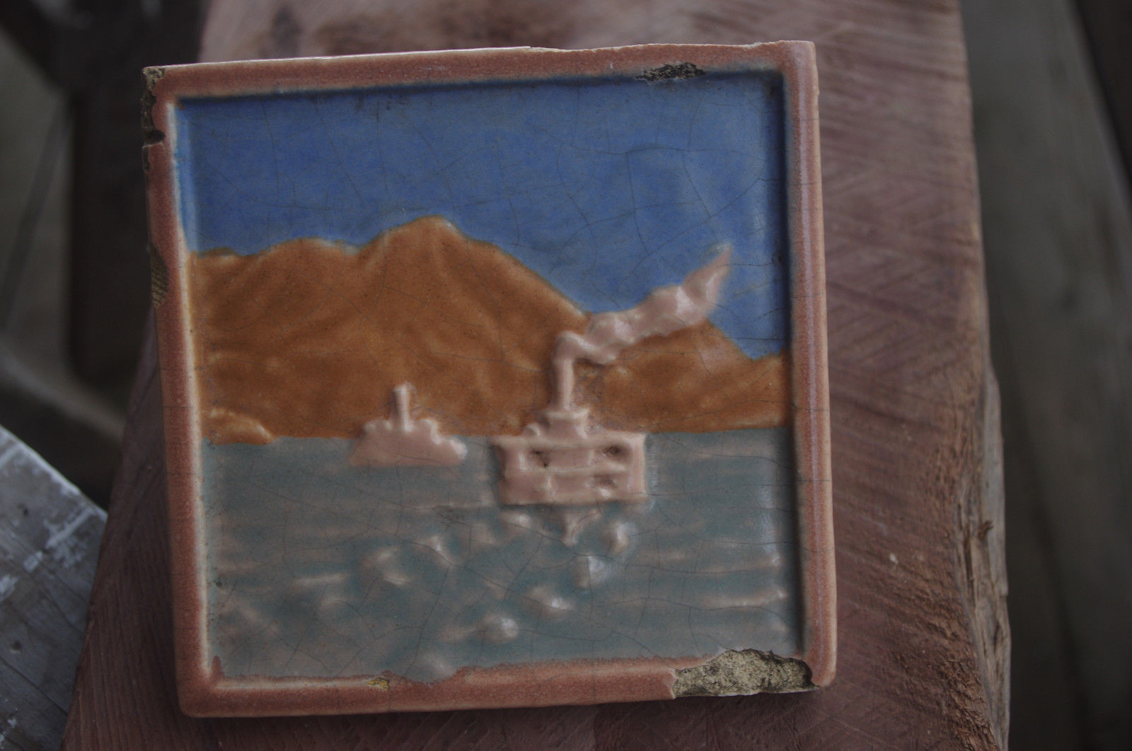 Ceramic tile - Vintage California Art Tile River Scene - signed