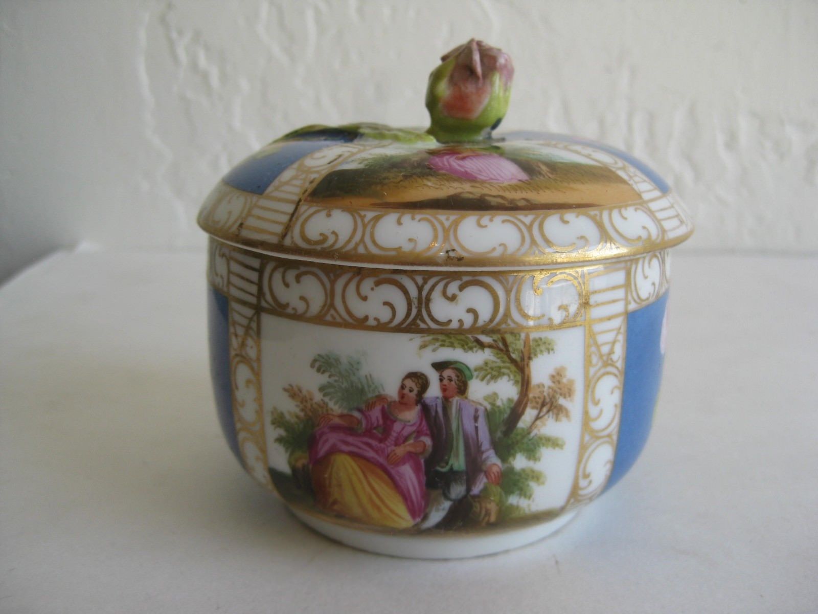 Antique 19C CARL THIEME POTSCHAPPEL PORCELAIN LIDDED TRINKET DRESSER BOX Dresden