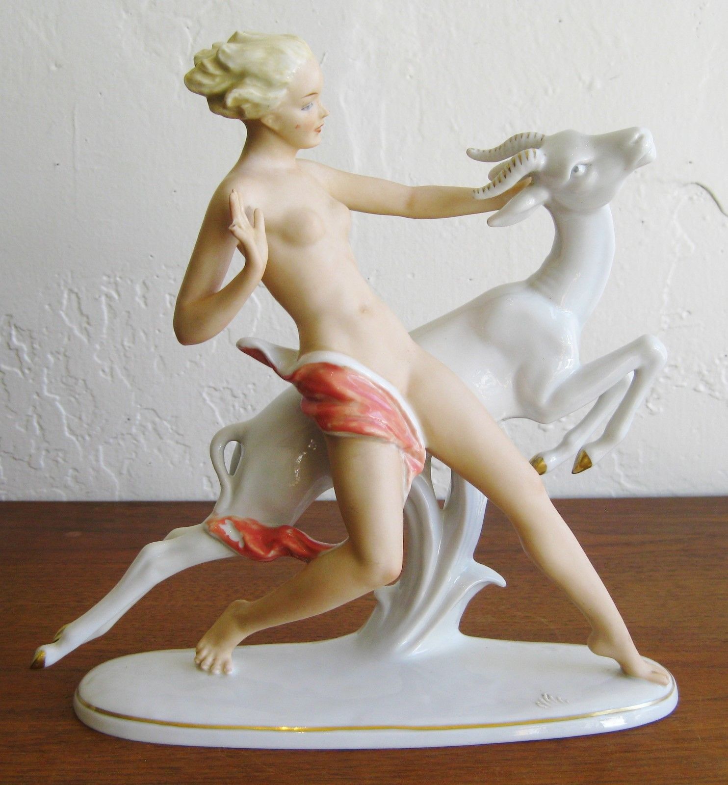 Title (ebay affiliate link): Antique Wallendorf German Porcelain Nude Blonde Lady & Ibex Figurine Sculpture