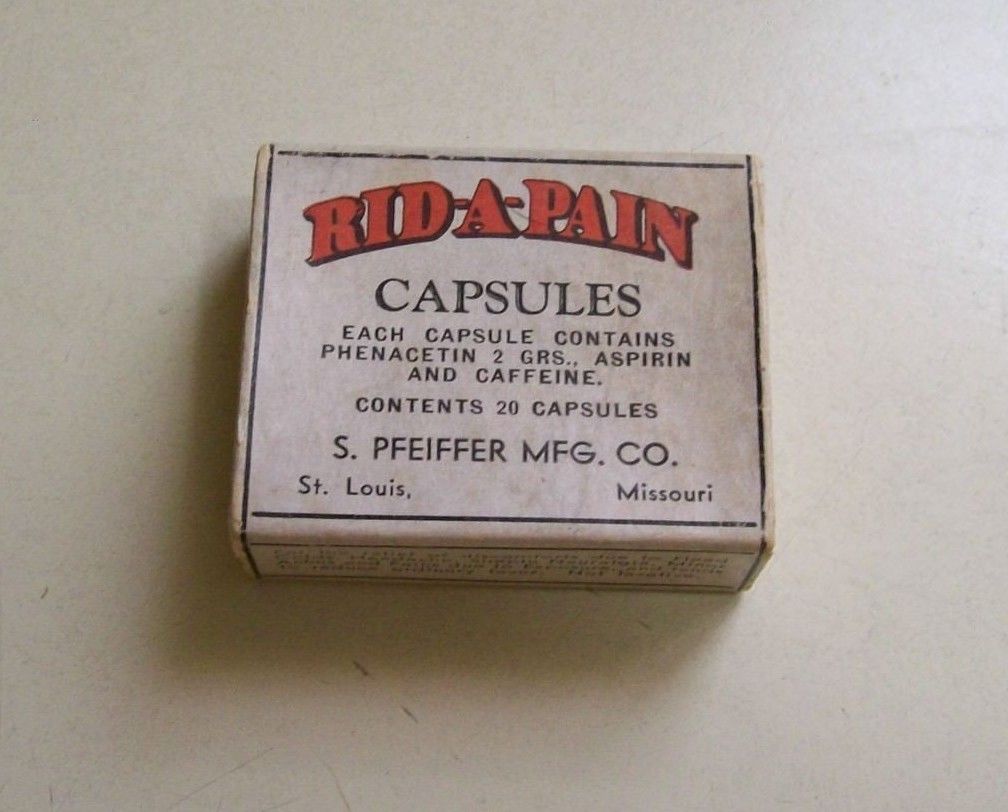 Title (ebay affiliate link): RID-A-PAIN Capsules, For Headache''s w/ Contents. Made in ST Louis, Missouri