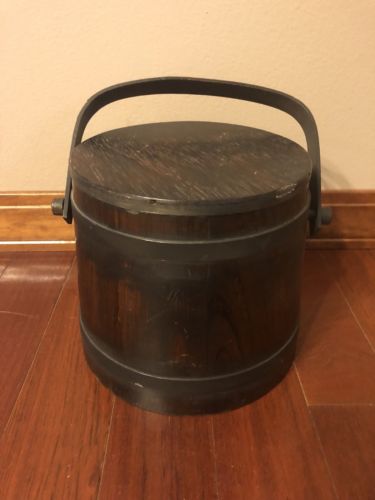 Title (ebay affiliate link): VINTAGE PRIMITIVE WOODEN SUGAR FIRKIN BUCKET WITH LID