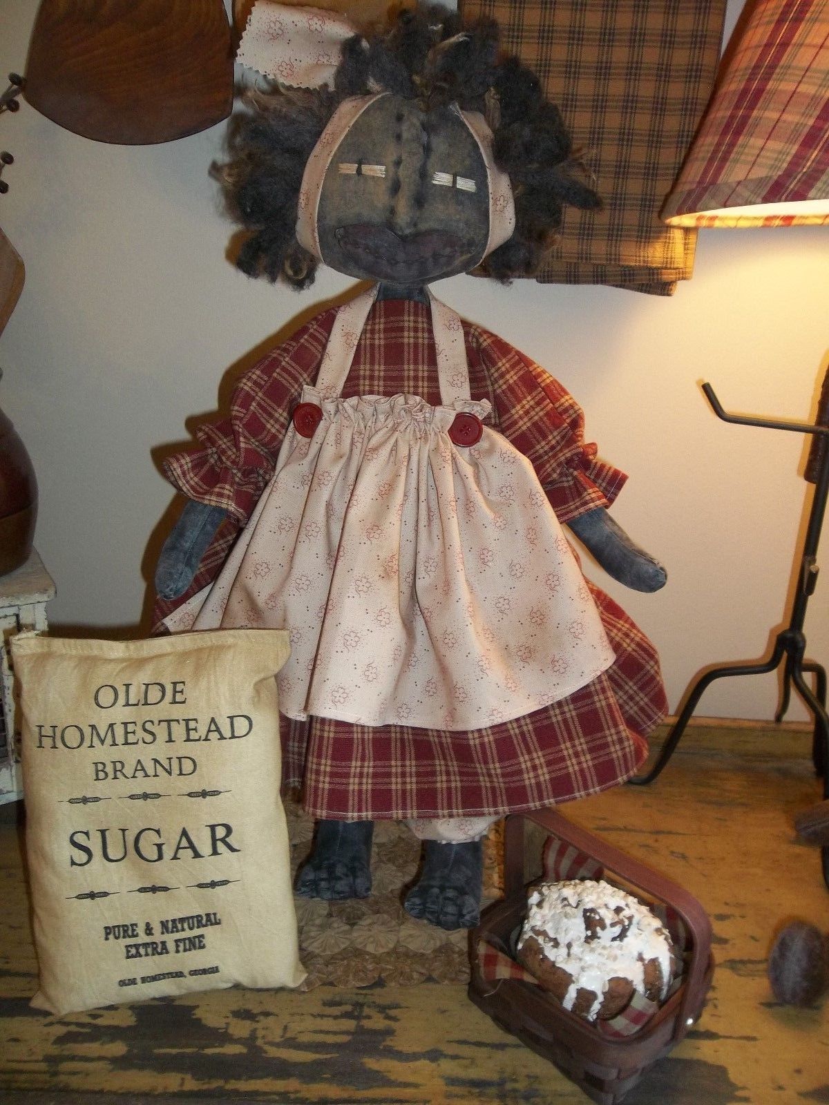 Title (ebay affiliate link): PRIMITIVE RAGGEDY BLACK FOLK ART BAKIN'' MUFFINS MAMMY DOLL