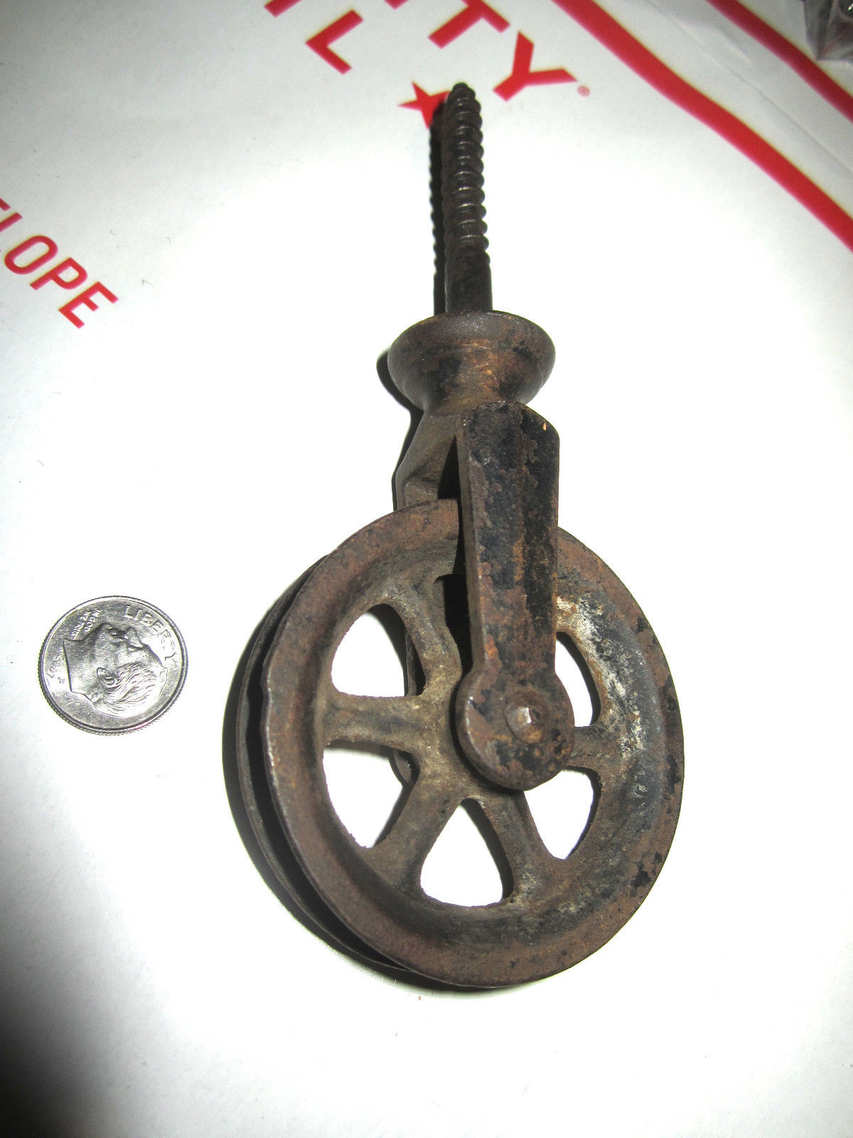 Title (ebay affiliate link): ANTIQUE UNKNOWN MAKER CAST STEEL PULLY WITH SCREW ATTACMENT 2" WHEEL