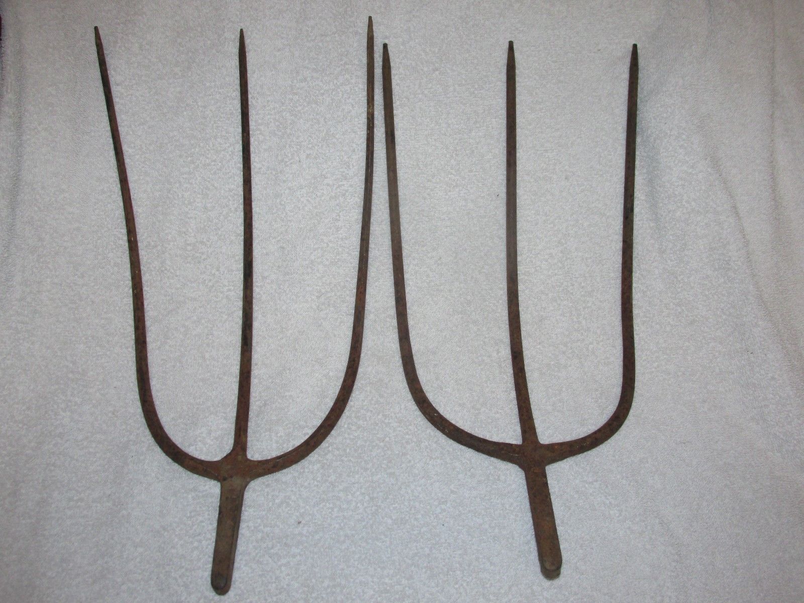 Primitive 3 Tine Hay Pitch Fork Heads Farm Tool Country Rustic