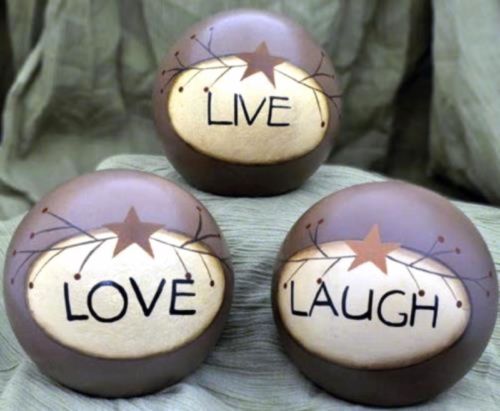 Primitive Decorative Balls LIVE LAUGH LOVE Stars Folk Art Bowl Fillers Set