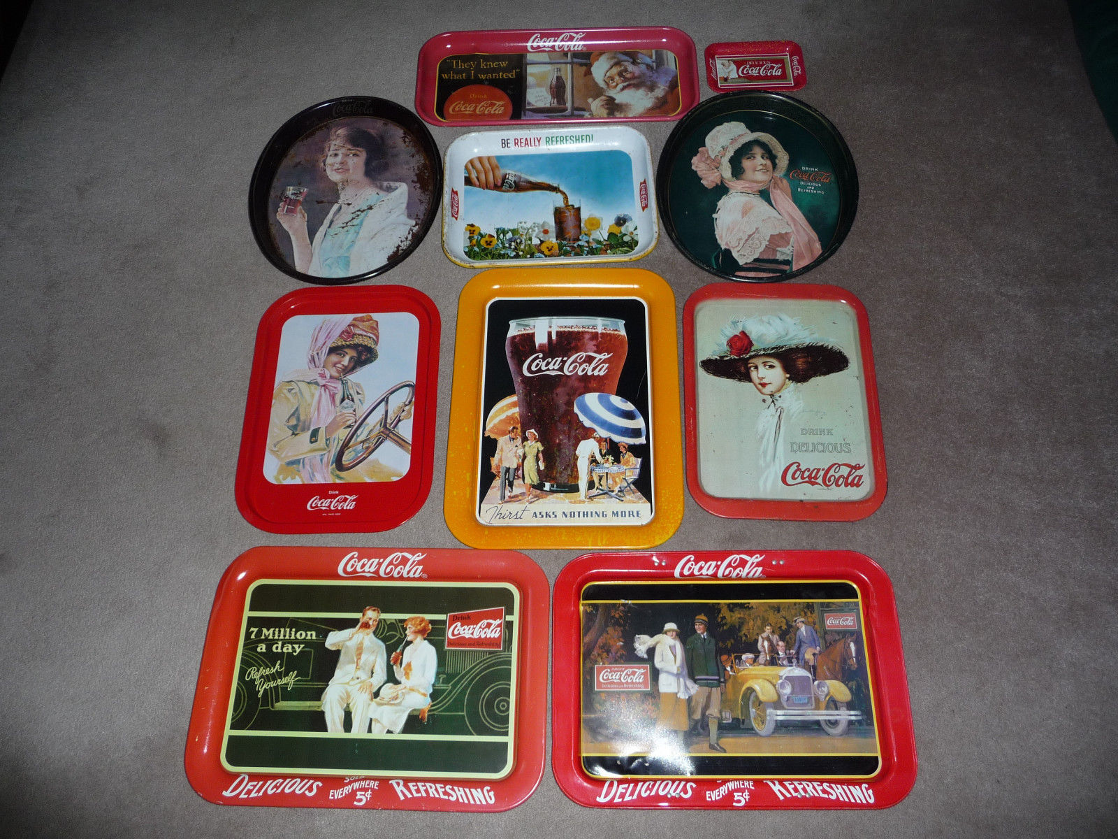 Title (ebay affiliate link): LOT/10 COCA COLA TRAYS OVALS, RECTANGLE, 1 TIP TRAY- SOME MARKED & DATED