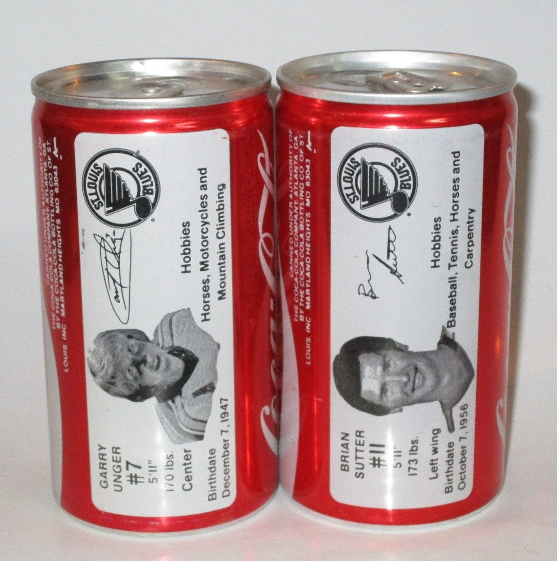 Title (ebay affiliate link): Coke cans St. Louis Blues Garry Unger, Brian Sutter, 1970s