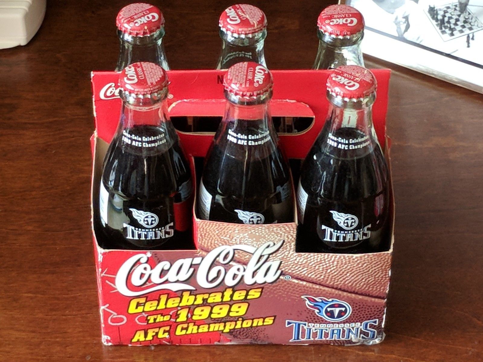 Title (ebay affiliate link): TENNESSEE TITANS 1999 AFC CHAMPIONS 6-PACK GLASS COCA COLA BOTTLES