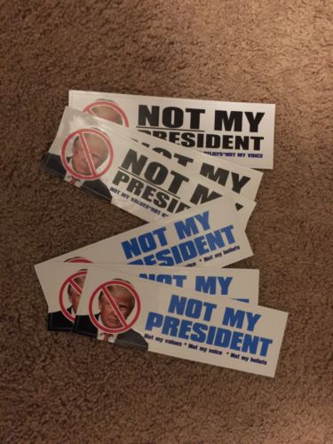 Title (ebay affiliate link): NOT MY PRESIDENT..Anti- TRUMP - Bumper Sticker Decals. SHIPS FREE --6 Stickers!