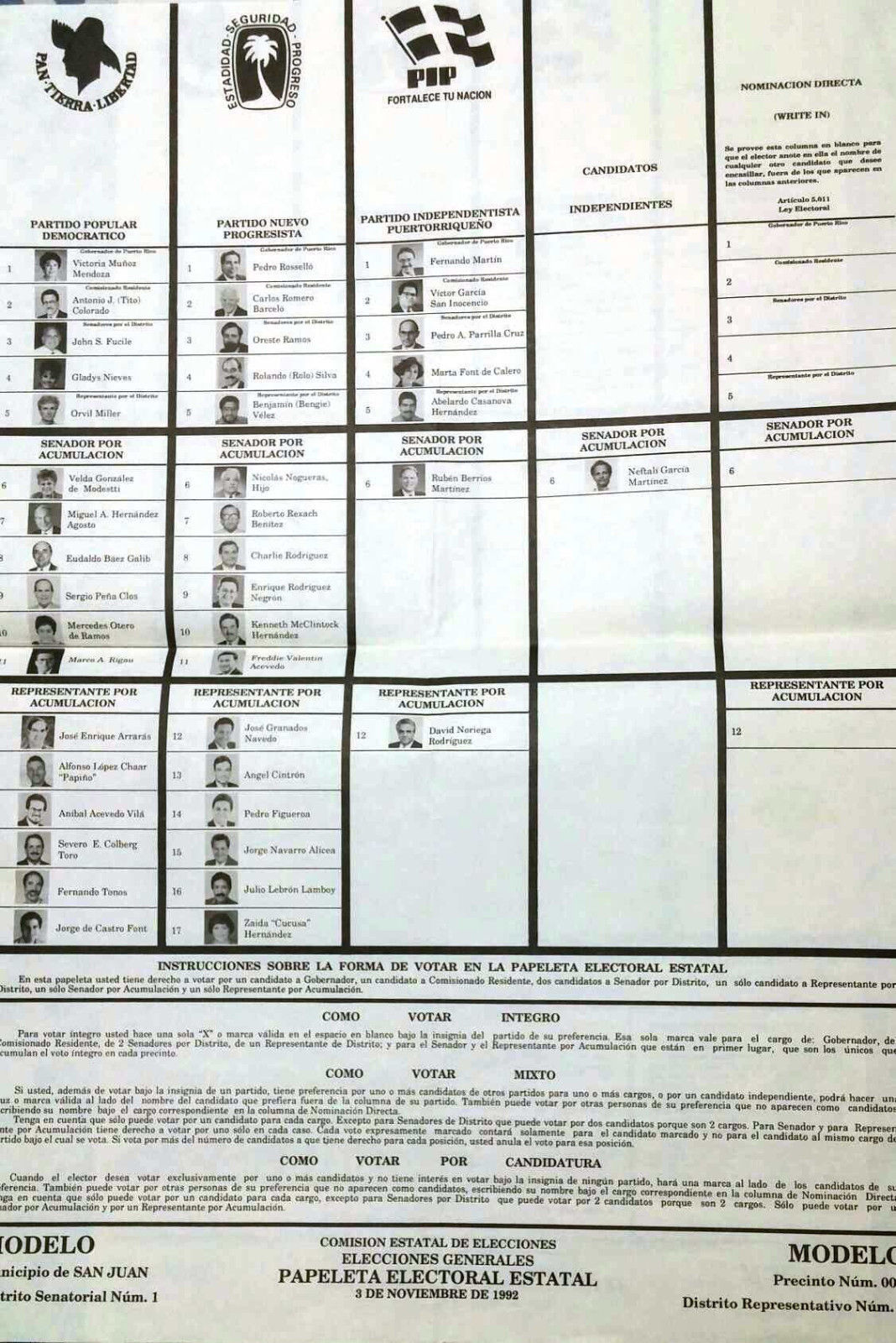 Papeleta electoral 1992 Puerto Rico elecciones elections ballot voting