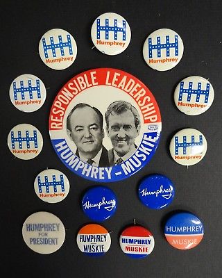 Title (ebay affiliate link): 1968 Humphrey/Muskie Presidential Campiagn Pin Lot of 15 Pins