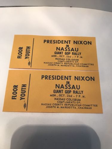 Title (ebay affiliate link): 2 FLOOR YOUTH TICKETS FOR PRESIDENT NIXON IN NASSAU GIANT GOP RALLY 10/23/1972