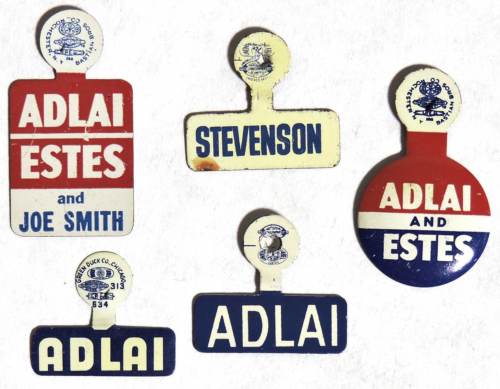 Title (ebay affiliate link): S997. VINTAGE: Set of 5: ADLAI STEVENSON Democratic Party Campaign Tabs (1950s)`