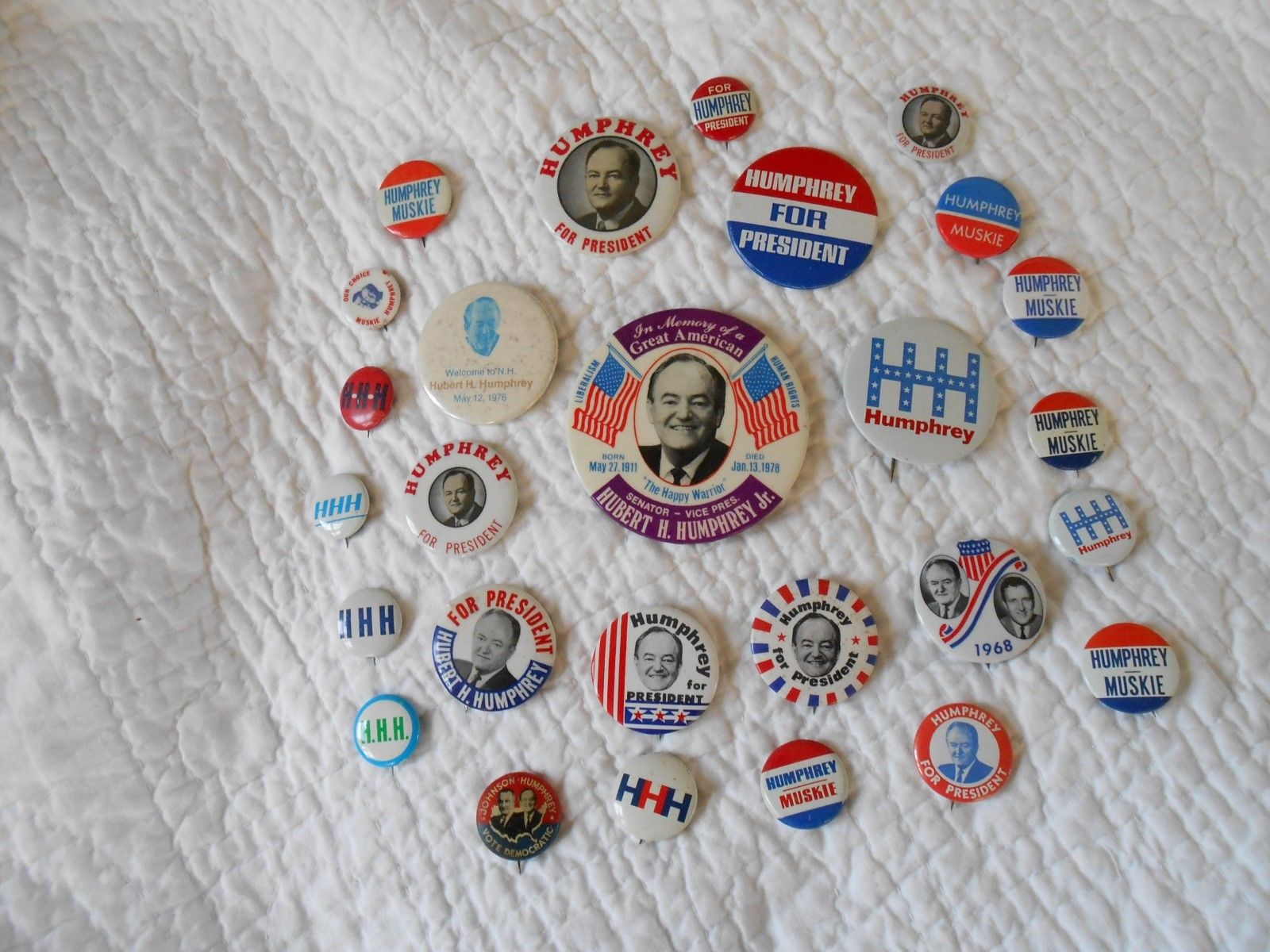 pins buttons polictical Herbert H. Humphrey 26ea allgoodcond differsizes pre-own
