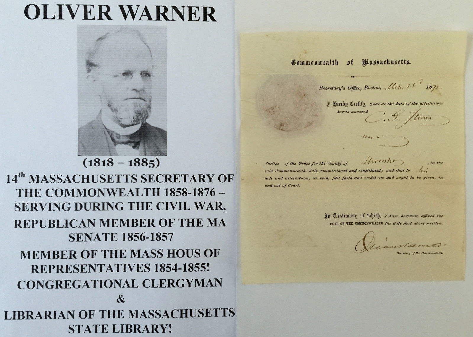 Title (ebay affiliate link): CIVIL WAR SECY STATE BOSTON MA LEGISLATOR CLERGYMAN LIBRARIAN DOCUMENT SIGNED VF