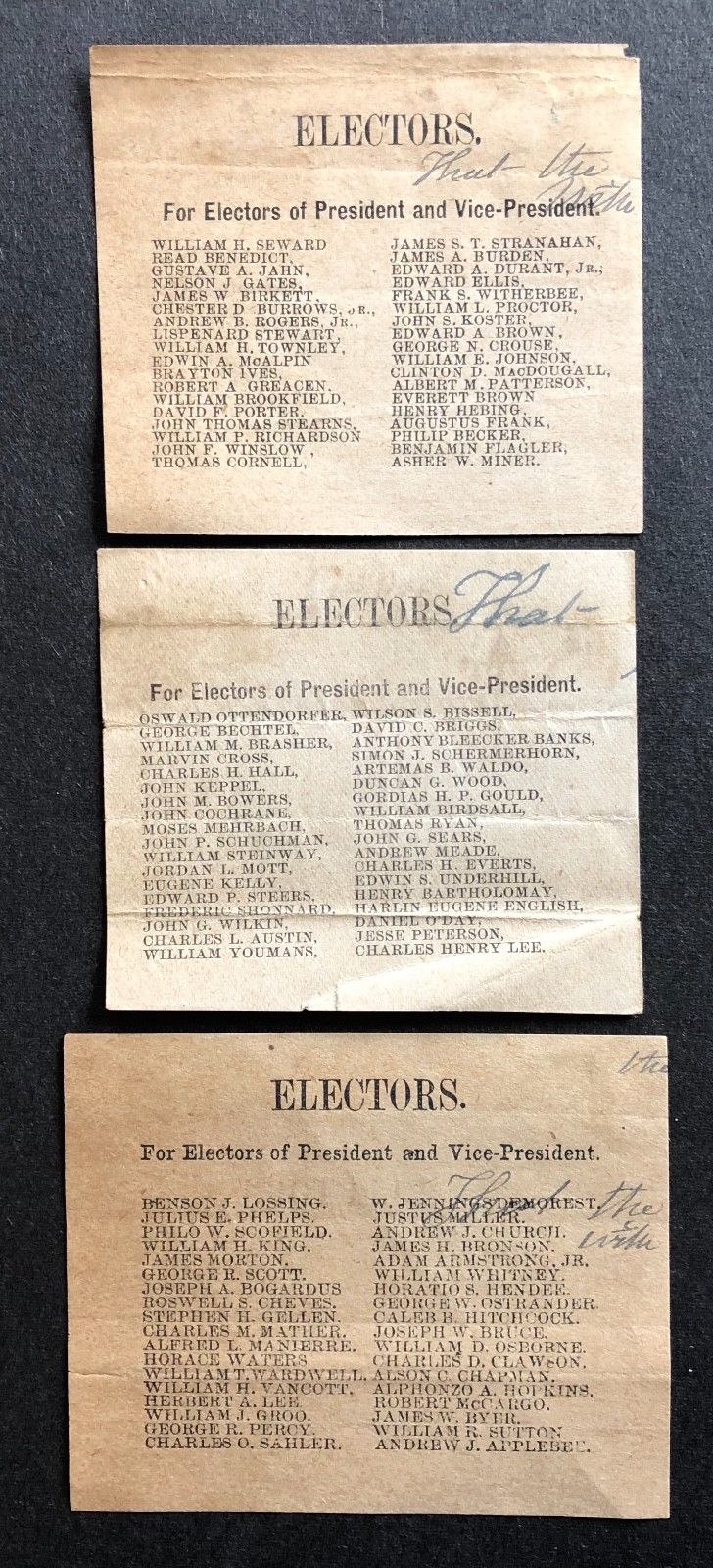 Title (ebay affiliate link): New York 1888 President & Vice President Electors Ballots William Seward, Jr.
