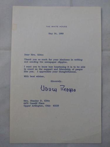 Title (ebay affiliate link): Nancy Reagan autograph signed typed Letter The White House May 24, 1988