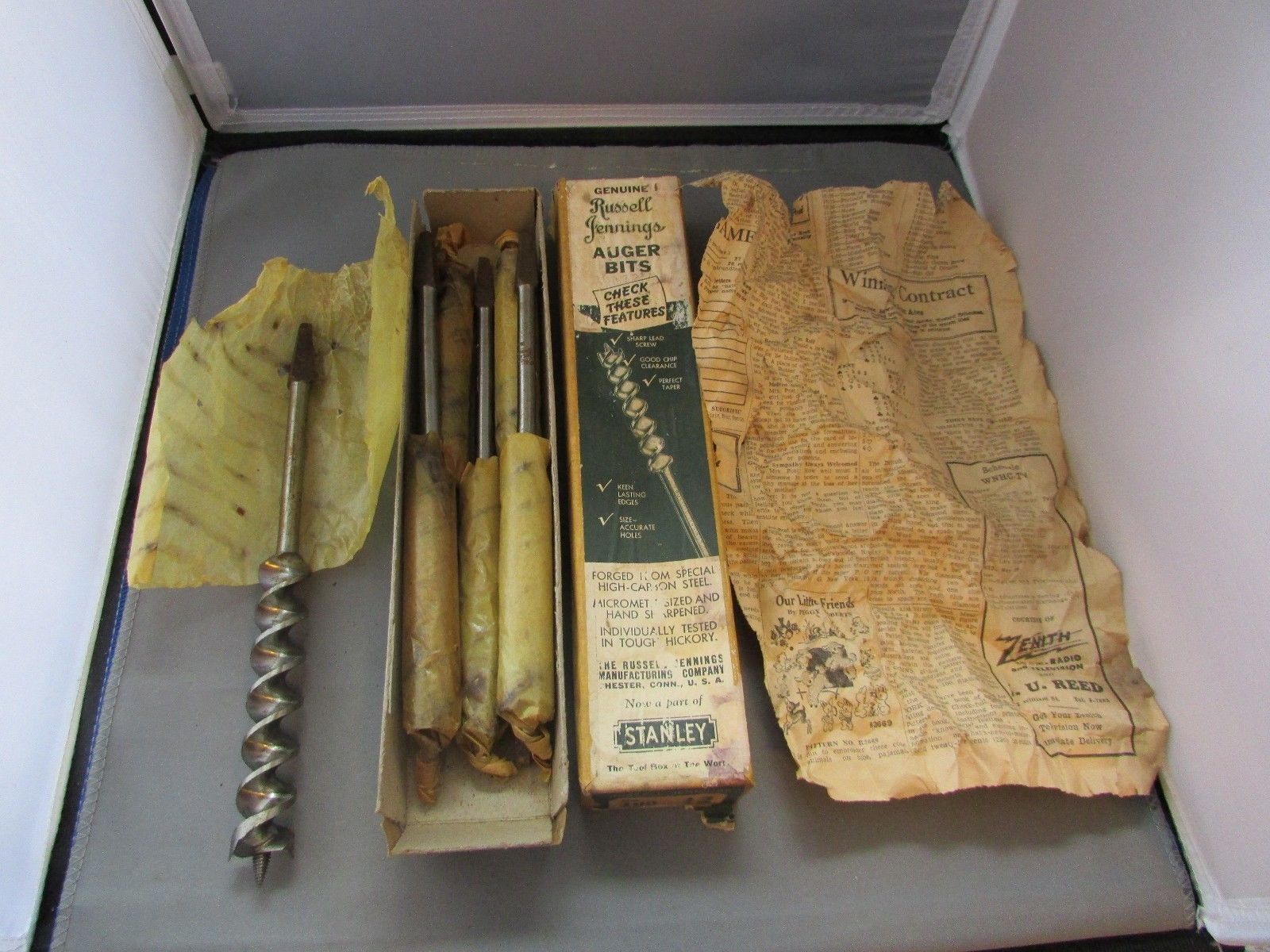 Title (ebay affiliate link): Box (6) NOS Russell Jennings Stanley Brace Bit Hand Drill 100 Auger Bits 13/16